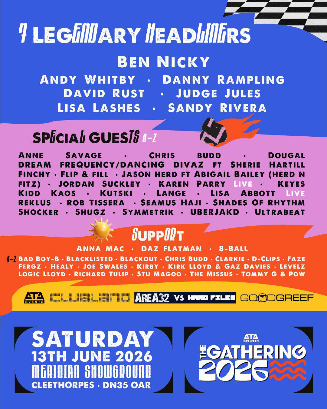 The Gathering Fest 2026 returns to Meridian Showground, Cleethorpes, on Saturday 13 June for Lincolnshire’s biggest electronic music festival. Join 5,000 ravers, 60+ international DJs, and five arenas of pure energy across house, techno, trance, drum & bass, and classics. Expect world-class production, immersive visuals, huge sound systems, and an unforgettable summer vibe by the coast. Early-bird tickets are live now — don’t miss out. BEN NICKY One of the most in-demand DJs in the world. Ben fuses trance, hard dance and psy into his Xtreme style. We Come 1 has over 23 million streams. Expect viral mashups and hard push energy that sends the crowd into overdrive. ANDY WHITBY The UK king of bounce and hard dance. Non-stop energy. Hands in the air anthems. A pure party starter that delivers big memories. DANNY RAMPLING Founding father of UK dance who lit the acid house spark with Shoom. Awarded Best Radio DJ and a Lifetime Achievement award. Every set is a stripped back lesson in house history with groove and authority. DAVID RUST Cutting edge trance. Heavyweight productions. Relentless drive from first beat to last. His reputation has been built on sets that feel like ignition. JUDGE JULES A legend of UK dance culture. Voted No 1 DJ by Mixmag and Best International DJ by the Dancestar Awards. The voice of a generation through his Radio 1 show. Expect a guided trip through trance and house classics as the Judge takes control of the X stage. LISA LASHES The undisputed Queen of Hard Dance. From Gatecrasher to Global Gathering she has ruled the floor. The only female artist ever to reach the DJ Mag Top 10. Fearless energy and a recognisable punch. This set will hit hard. SANDY RIVERA Soulful house pioneer and the man behind Kings of Tomorrow. Creator of Finally with over 30 million streams. Deep grooves with lift and feel. Expect spine tingling moments when the vocal hits.